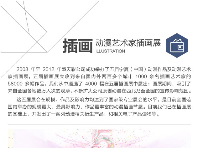 由寧夏自治區(qū)黨委宣傳部、寧夏回族自治區(qū)文化廳、銀川經(jīng)濟技術開發(fā)區(qū)管委會等單位聯(lián)合主辦,寧夏軟件園管理辦公室、銀川盛天彩文化傳媒有限公司承辦,中國插畫網(wǎng)...