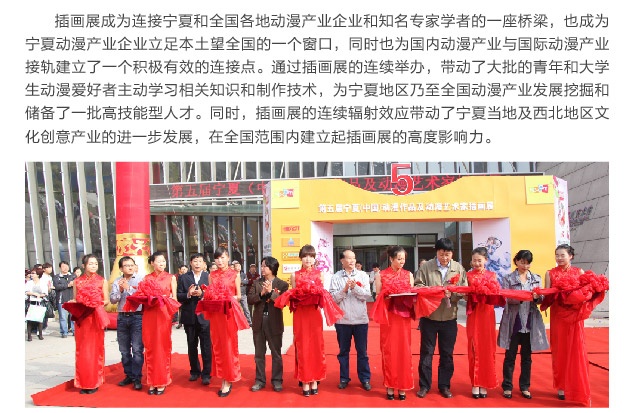 此次活動,借助中國60周年大慶和寧夏首屆國際文化旅游藝術博覽會的雙重契機,對于向青少年普及插畫動漫文化創(chuàng)意知識,發(fā)展文化產(chǎn)業(yè),營造動漫文化氛圍,促進寧夏...